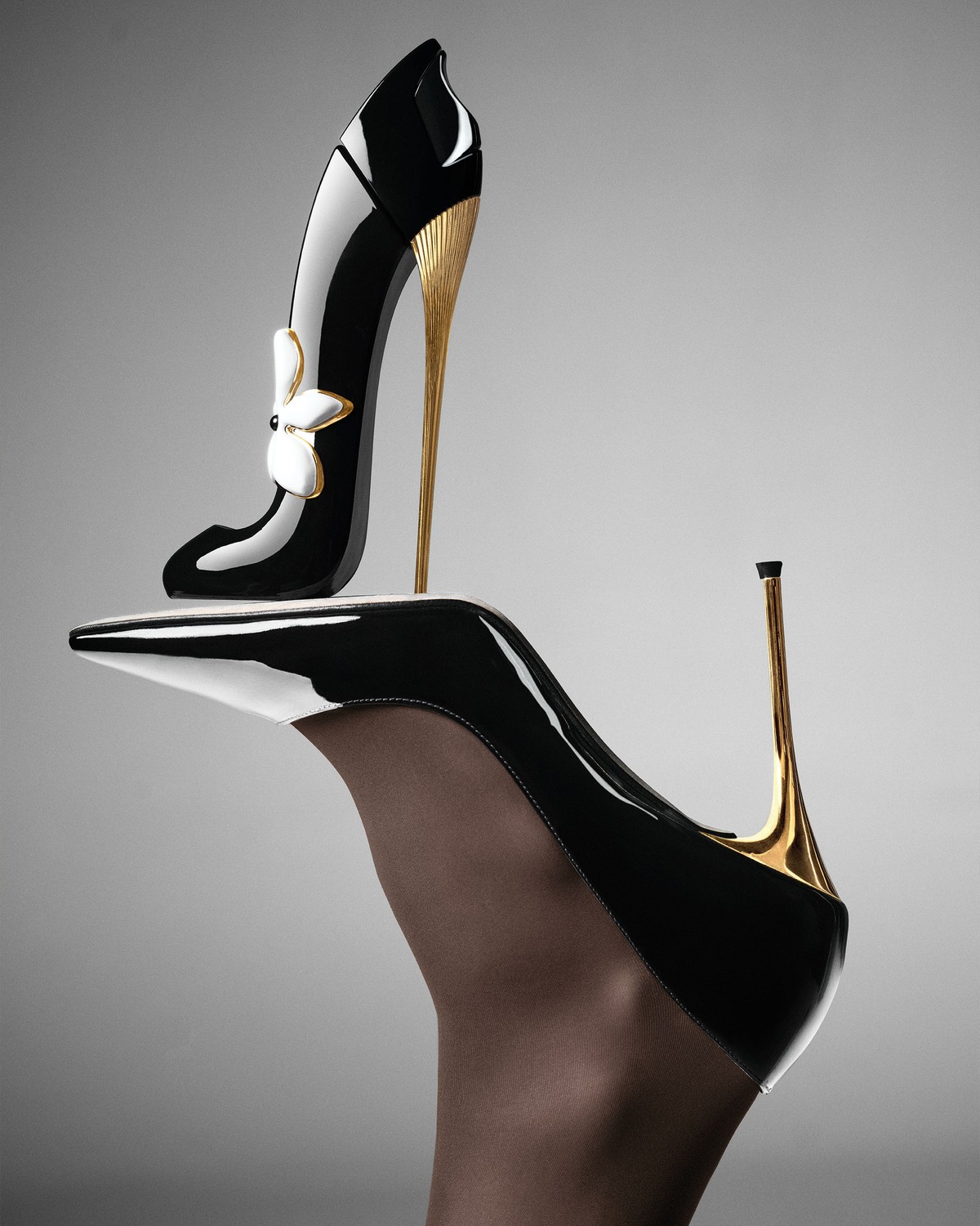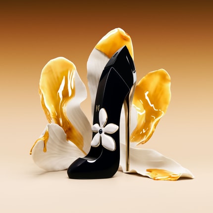 Frasco Icônico Good Girl O clássico frasco em formato de salto alto representa poder e feminilidade, agora reinterpretado para refletir a intensidade desta versão.